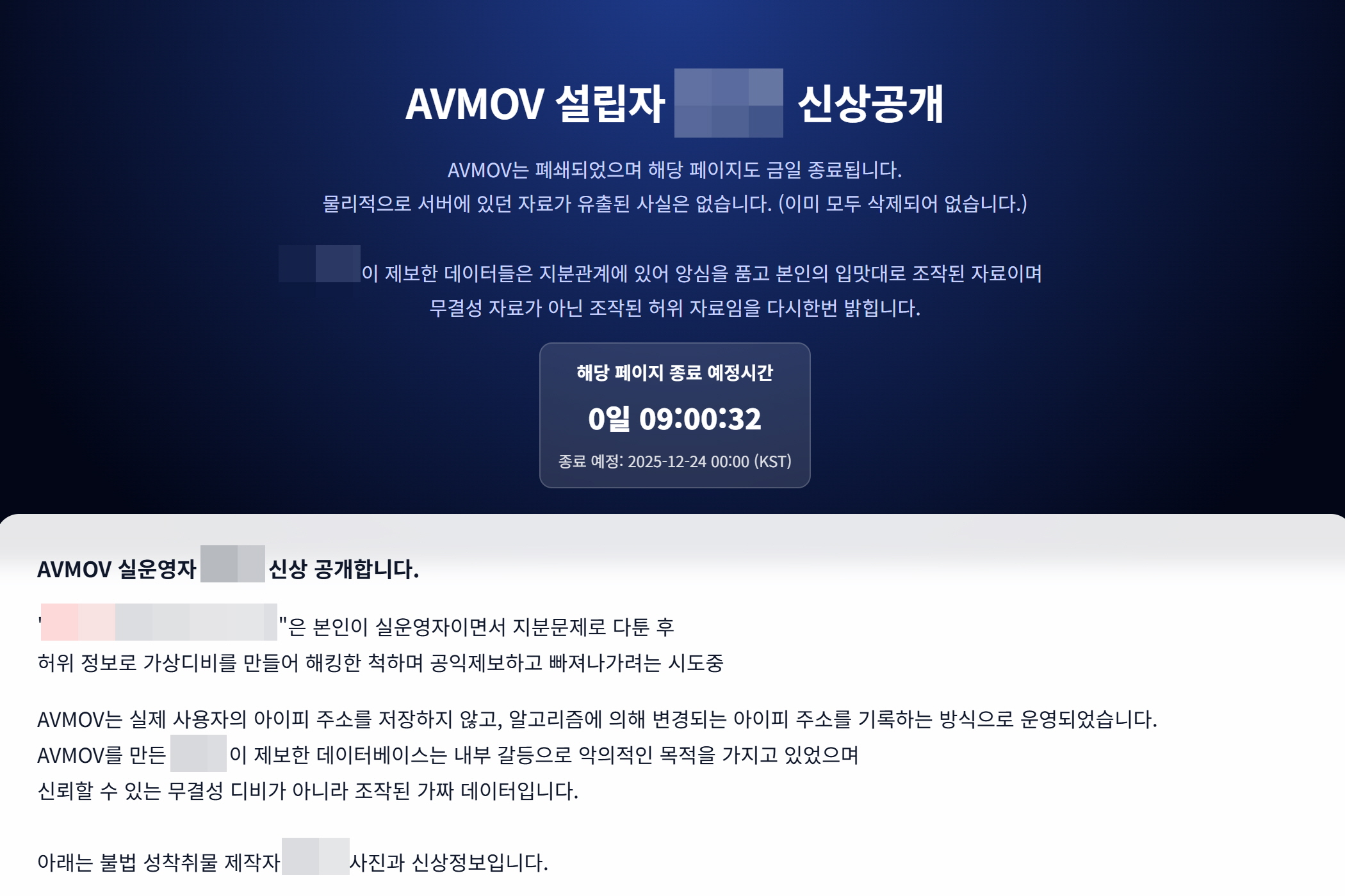 사진=경찰 단속 후 폐 폐쇄 수순을 밟고 있는 AVMOV 홈페이지 메인 화면 [서드앵글] 가족과 지인을 대상으로 한 불법촬영 영상을 유포하며 수십억 원의 수익을 올린 대규모 성착취물 사이트 ‘AVMOV’가 경찰에 적발됐다. 2022년 중순 개설된 이후 약 3년간 운영된 이 사이트는 가입자 수만 54만 명에 달하며, 디지털 성범죄의 온상으로 군림해온 것으로 드러났다. 최근 JTBC의 단독 보도 이후 경찰이 전방위 수사에 착수하면서, 운영진 추적과 더불어 이용자들에 대한 대대적인 처벌 가능성이 제기되고 있다.